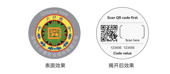 新防伪镭射标识采用量子云码技术,有极难复制、无视破损、隐蔽赋码三大安全优势。