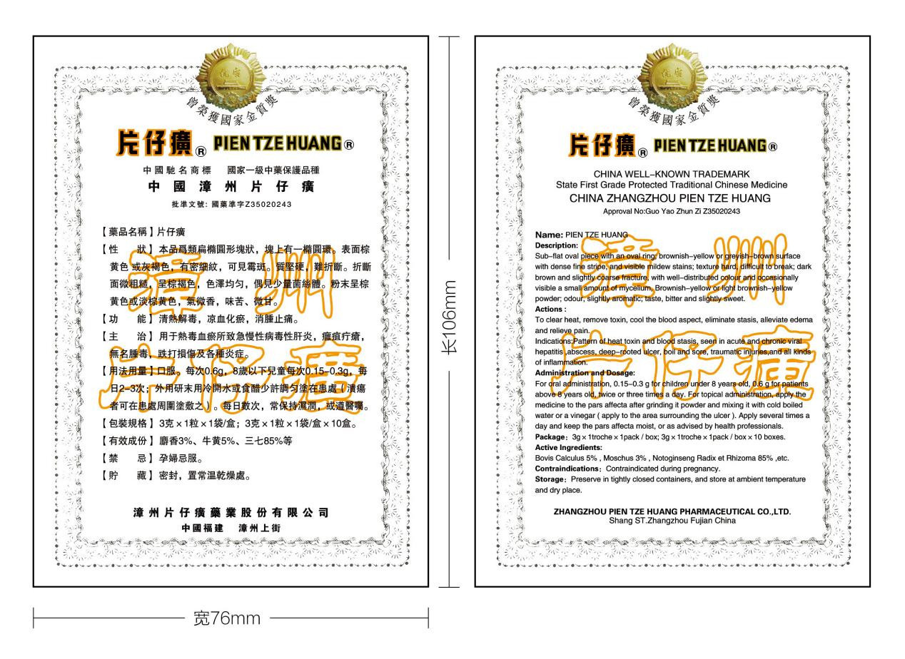 漳龙外销片仔癀镭射大标签(境外版)