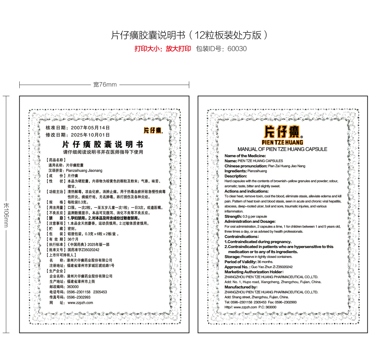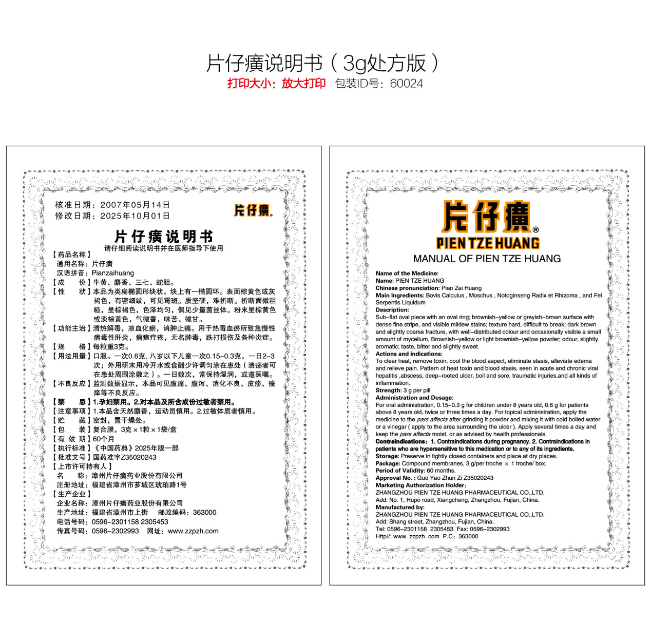 外销片仔癀说明书-水印纸