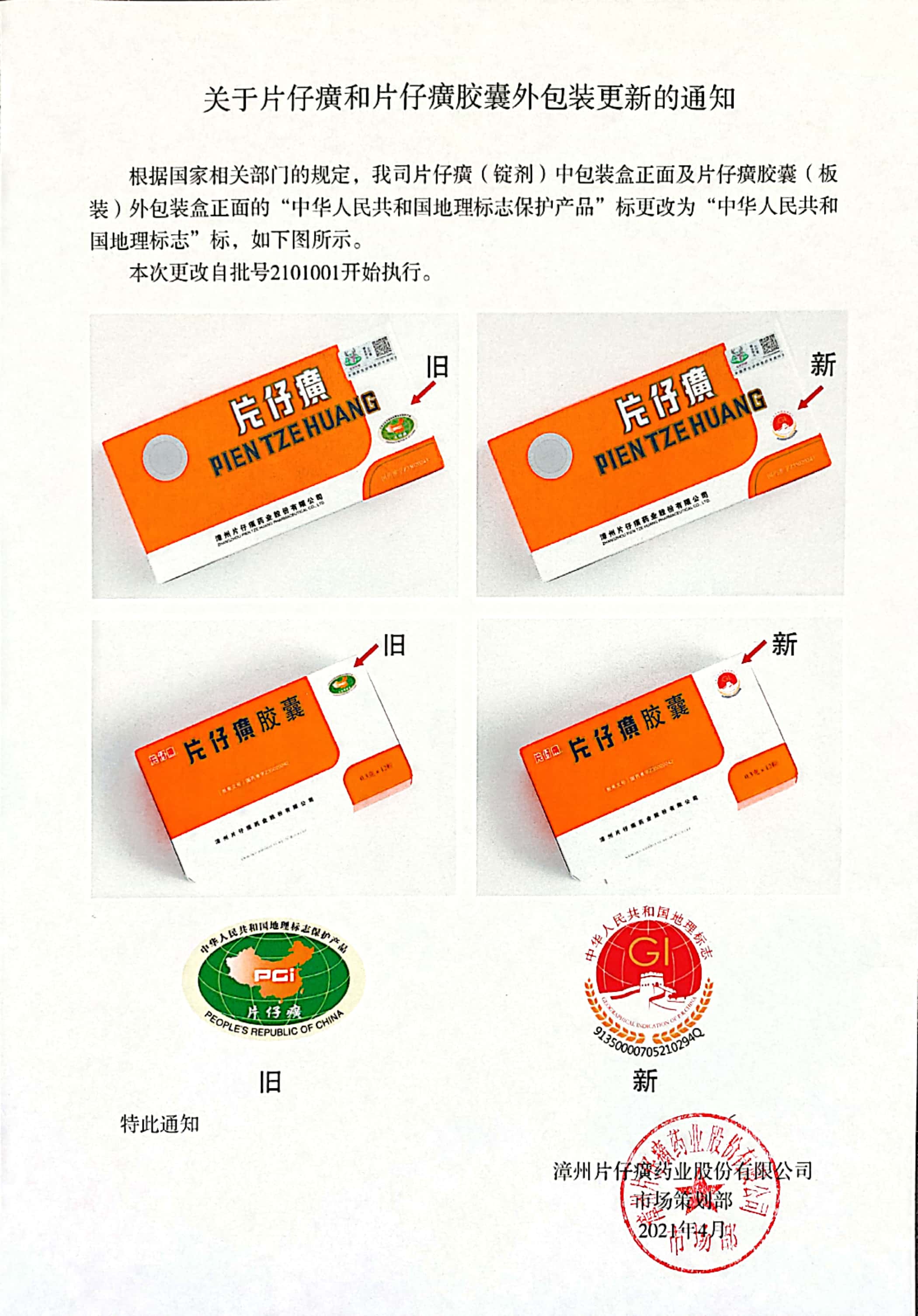 关于片仔癀和片仔癀胶囊外包装更新的通知