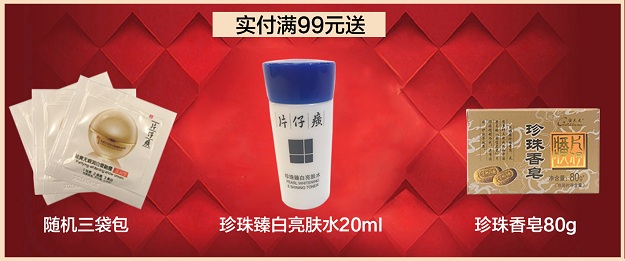 满99元 送随机三袋包+珍珠臻白亮肤水20ml+珍珠香皂80g(200份)