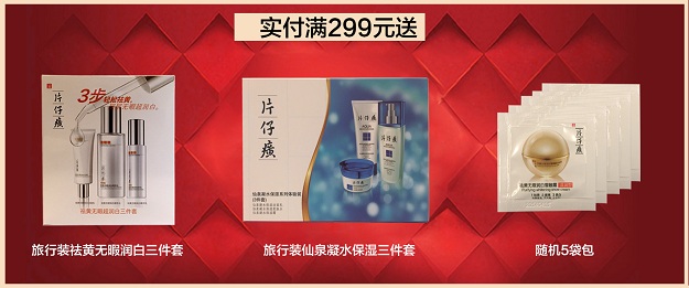 满299元送旅行装祛黄无暇润白三件套+旅行装仙泉凝水保湿三件套+随机5袋包(100份)