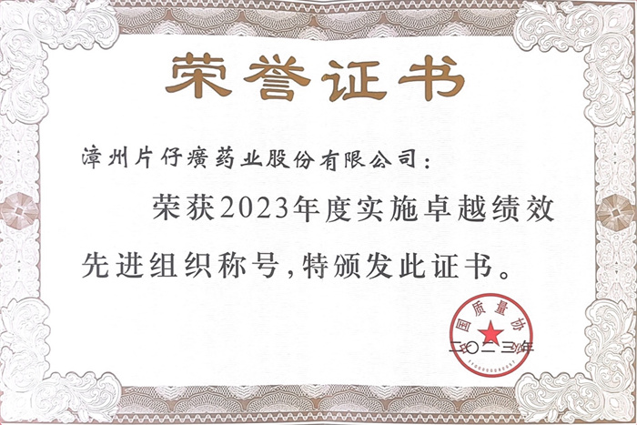121日,以“提升质量效益,筑牢卓越之基”为主题的2023中国质量协会年会及第二届全球追求卓越大会在北京召开,会上,漳州片仔癀药业股份有限公司荣获2023年度“全国实施卓越绩效先进组织”称号,公司连续两届获此殊荣 。