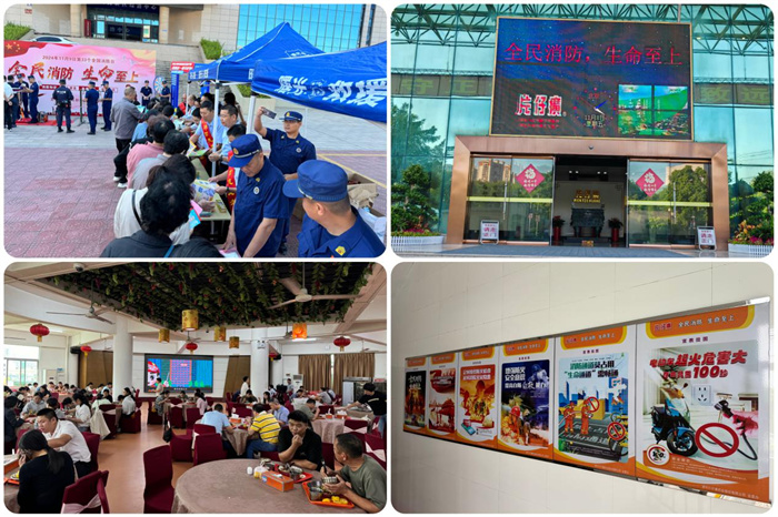 营造氛围,消防安全在宣传。线上线下开展多种形式的消防宣传。线上利用内部泛微群、微信安全工作群等形式转发消防安全警示教育片、事故案例片、每天消防小知识、消防知识测试闯关、消防器材设施及应急常识等宣传小视频和软文48条;线下利用公区宣传栏、LED显示屏、宣传展板等悬挂横幅、张贴海报、投放LED显示屏共46块主题宣传,发放宣传材料6420余份;公司结合“119”消防宣传日,与高新区消防救援大队在百花村联合开展“全民消防 生命至上”消防宣传日活动,向广大群众普及消防安全知识和防火自救技能。形成线上加线下的消防宣传渠道,让全体员工充分沉浸在学消防、懂消防、用消防的氛围中,共同营造消防安全稳定的工作环境。