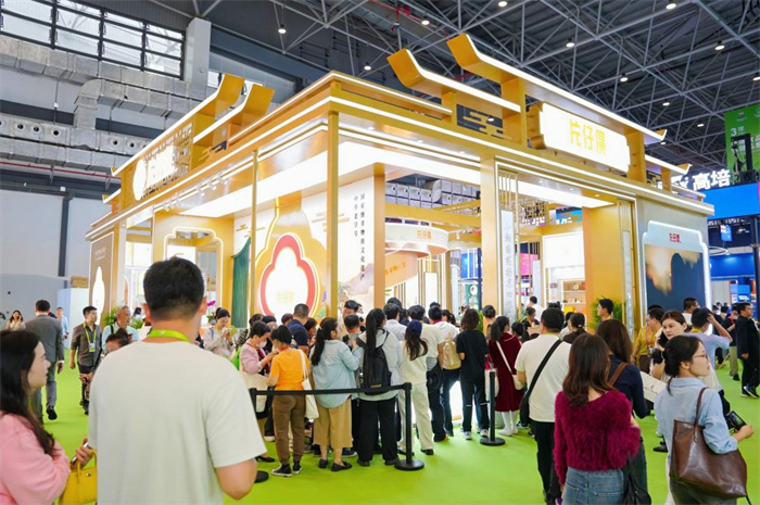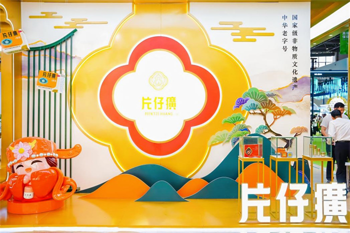 片仔癀独立展区以“历史长河”为叙事主线,融合飞檐、格栅等传统建筑元素,中心动态卷轴通过光影技术演绎品牌近500年的传承脉络。展区全方位展示了“国药之光”核心品种片仔癀、重要系列品种复方片仔癀含片、茵胆平肝胶囊等产品;“东方新国妆”体验区以皇后牌御容臻致珍珠膏、宣娇赋采系列化妆品为核心,首发以明星产品皇后牌片仔癀珍珠膏为基础原型创作的IP形象“癀小御”;“全域健康”矩阵区聚焦芦笋颗粒、珍立片/胶囊、双孢蘑菇提取物片、西洋参三七丹参颗粒四款“蓝帽子”保健食品,联动漳州特色食品、茶系列,构建“药品+化妆品+保健食品”三位一体的大健康生态。