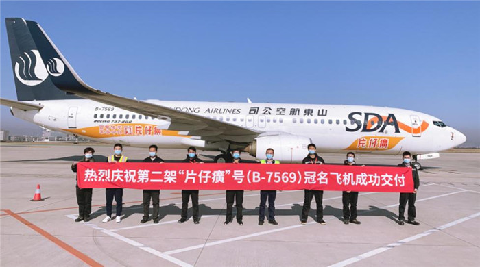 2021年1月14日,第二架山东航空“片仔癀”号冠名飞机在厦门机场顺利交付。两架“片仔癀”号冠名飞机全部交付完成,共同将“国货之光”发扬光大,承载万千旅客,一起闪耀高空。