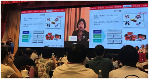 大会主席林丽珠教授是卫生部临床重点专科及全国中医肿瘤重点专科学术带头人、广州中医药大学第一附属医院肿瘤中心主任,其从事中西医肿瘤临床研究三十年,擅长中晚期恶性肿瘤的综合治疗,多年来一直关注及积极推动肿瘤的中西医结合精准治疗,会议期间林教授肯定了片仔癀等大批中药为肿瘤精准与规范治疗所做的贡献和有益探索,并向与会代表发布了片仔癀治疗中晚期原发性肝癌临床试验数据。