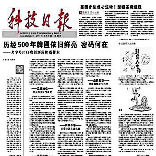 《科技日报》《历经500年牌匾依旧鲜亮 密码何在——老字号片仔癀创新成优质样本》