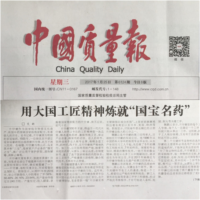 《消费日报》《片仔癀:坚守品质建设 用心铸造一流品牌》