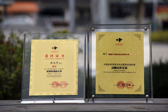 2015320日,第20届中国美容博览会品牌联盟主席团峰会在上海隆重召开,福建片仔癀化妆品有限公司副董事长兼总经理陈杰华再度荣任“品牌联盟副主席”,片仔癀化妆品公司也被授予中国美容博览会商业联盟全国巡演“战略合作企业”,“片仔癀”品牌被授予护肤类“领衔品牌”