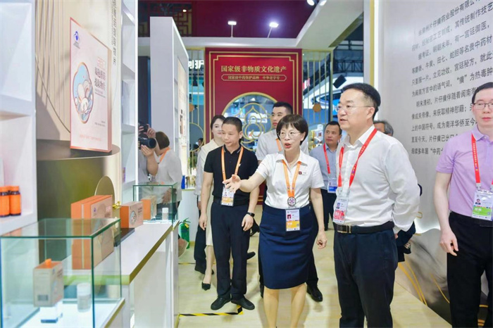 福建省人民政府副省长、党组成员及福建展团代表一行莅临片仔癀展位,先后参观片仔癀药品、化妆品、保健食品各展区,深入了解近年来片仔癀公司大健康产业发展情况,对片仔癀、复方片仔癀含片及片仔癀化妆品系列、片仔癀“蓝帽子”保健食品系列表示肯定。