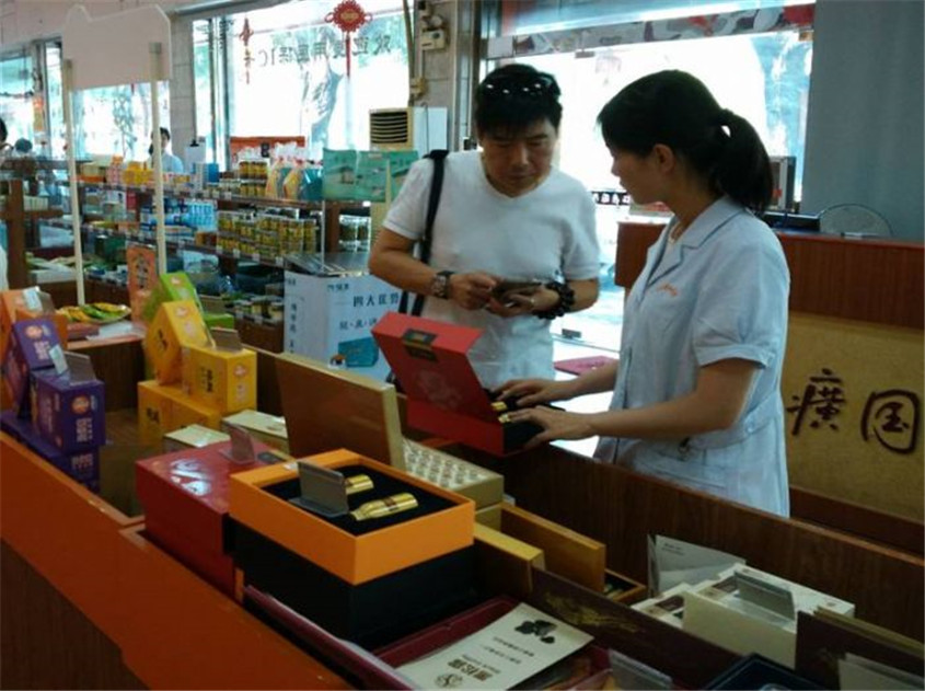 6月15日,为期一周的父亲节主题促销活动正式拉开序幕,保健食品公司员工身着统一服装,配合国药堂工作人员在八家门店贴出活动海报,布置促销台及产品堆头。活动现场进行免费品尝片仔癀养饼,部分产品特价销售,同时配以扫码抽奖等线上线下互动活动,吸引不少消费者积极互动。