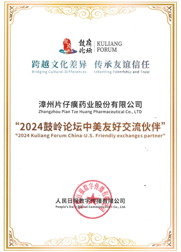漳州片仔癀被授予“2024鼓岭论坛中美友好交流伙伴”荣誉称号