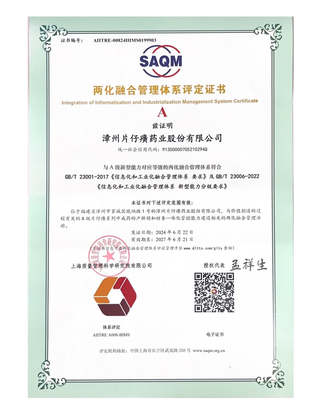 漳州片仔癀药业股份有限公司,是国家高新技术企业、中华老字号企业。