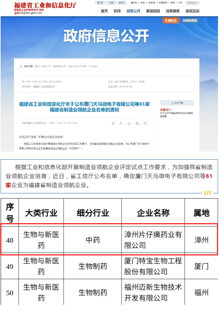 片仔癀药业荣获“2024中成药工业综合竞争力50强”第4名