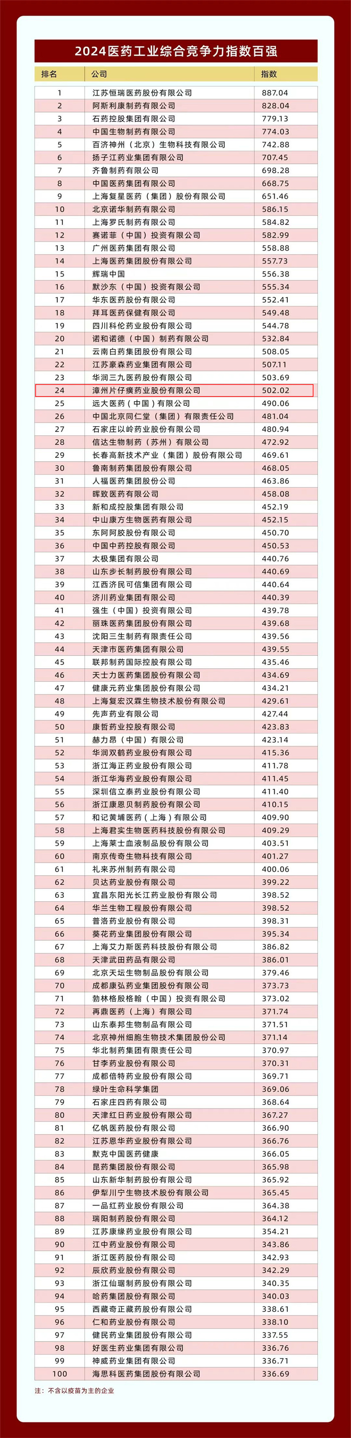 片仔癀药业荣获“2024医药工业综合竞争力百强榜”第24名